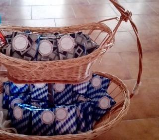 Laura, se encargó de diseñar las tajetas que iban a ponerse en los regalos. Que sin duda, cuando los colocamos quedaron preciosos. Para los detalles de las mujeres se hicieron unos bolsitos, para entregar dentro los regalos.