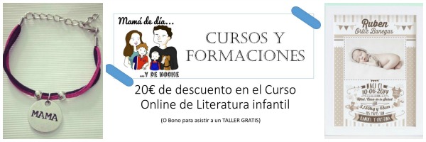 - Mamá de día y de noche. Ely es una mamá blogger que conozco hace tiempo, y que desde hace poco se ha decidido a emprender. Ella es maestra de profesión y por vocación, así que está llevándolo a la prática impartiendo talleres y cursos para padres. En ellos puedes formarte sobre literatura para niños, cuentos folclóricos, operación pañal... Gracias a este sorteo, podrás conseguir un descuento de 20 euros para el curso online de literatura infantil, o puedes escoger uno de los talleres.