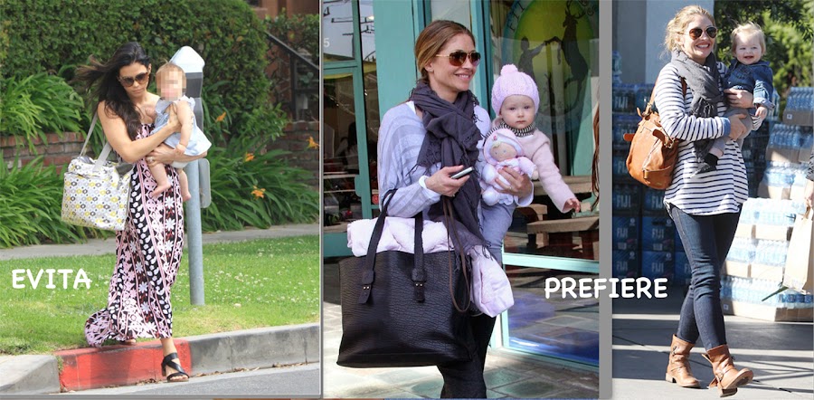 El bendito bolso materno, y peor si es de dibujitos, lo llevas a todas partes, con miles de cosas que ni necesitas, y como es tan grande no hay forma que lleves cartera extra, así que celular y billetera entran allí, lo peor es que de tanto uso se maltrata tirando tu imagen al piso. Si tu bebe ya paso los tres meses ya sabes lo que realmente necesitas así que busca un Tote lindo o una mochila bella y olvidate de la pañalera. Puedes comprar sobres portapañal o llevar la muda extra de ropa en bolsas ziploc. Y si de salir a pasear al bebe se trata, lee el post ¿Cómo salir a pasear al bebe con estilo y súper cómodas?.
