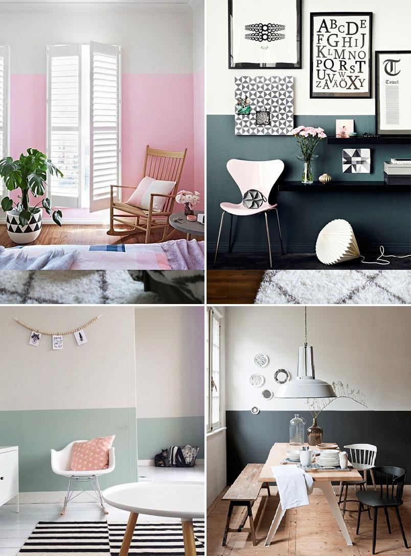 3. Una de las tendencias más de moda y tremenda mente fácil, es la de medio pintar la pared: dejando los brochazos vistos o con una linea definida.