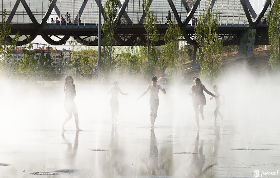 Hay zona de patinaje, tirolinas, césped, zonas infantiles, sus famosos toboganes y además, en verano, la "playa urbana" llena de zonas de agua para jugar bajo el calor del verano madrileño.