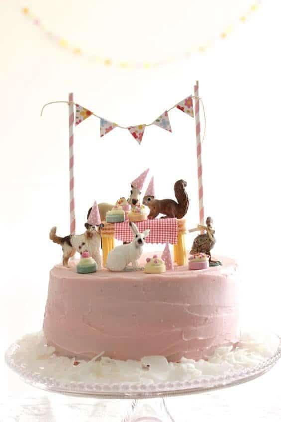 Otra idea de decoración es usar sus muñecos preferidos. Te aconsejo que los sitúes sobre un trozo de fondant (simulando por ejemplo un charco o césped). Puedes ayudarte de la parte ondulada de los moldes redondos que presenté en el artículo de herramientas o les pongas algo de fondant en la base de la figura, así nadie se escandalizará (por poner sus juguetes en la tarta) cuando le des su trozo de tarta…por si acaso.
