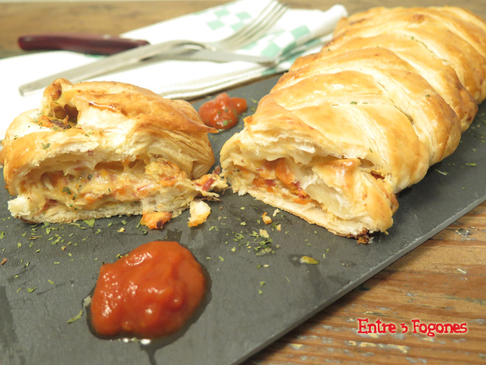 TRENZA DE HOJALDRE RELLENA DE CARNE DE COCIDO CON BECHAMEL