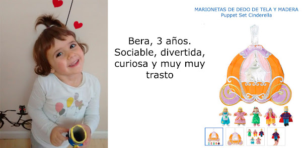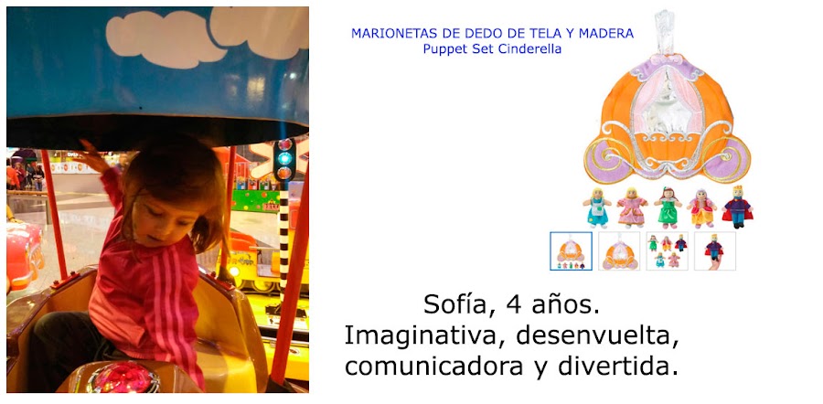 Para su Bera y Sofia como les encantan las princesas (ellas lo son) he elegido estas marionetas de dedo para que inventen historias, canten y jueguen, me encantaría poder estar allí cuando lo abran, son tan imaginativas y resueltas que seguro que se inventan fantásticas y divertidas aventuras.
