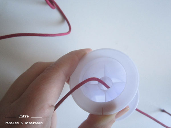 [2] Pasar un cordón por el interior de una bobina de hilo o similar