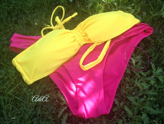 Bikini amarillo y fucsia. Aunque no sé yo si me animaré a esta combinación de color. ¿A ti te gusta?