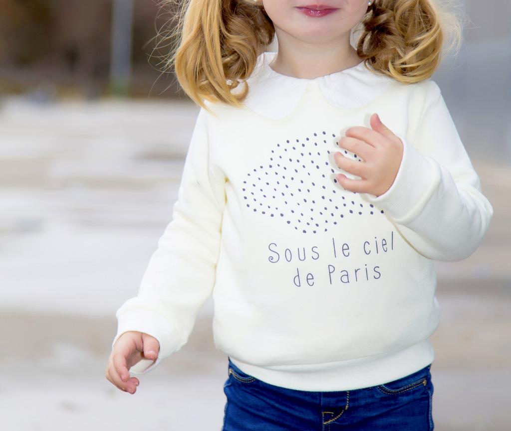 SOBRE EL CIELO DE PARÍS, otro texto precioso el de este jersey cuando lo vi y vi que tenían una boina azul marino compre ambas cosas pensando en look completo, pero la boina la pedí en la talla mas pequeña y no le cabe, una lastima