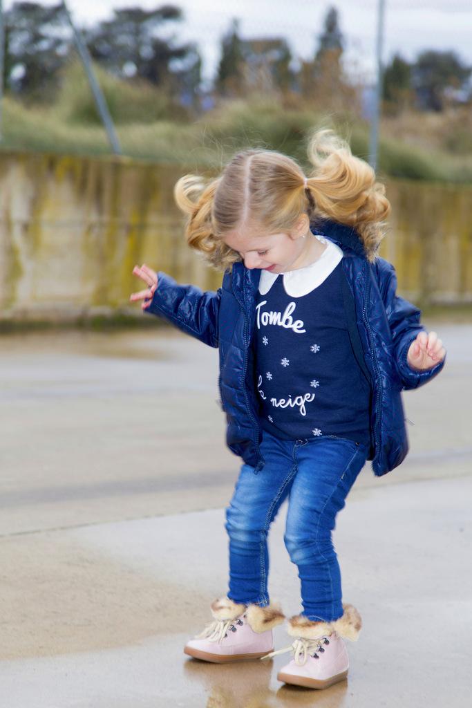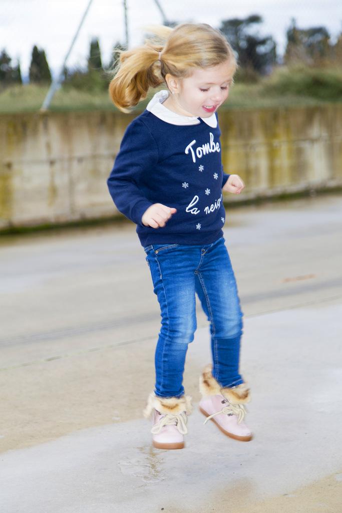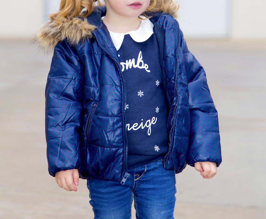 Que mayor la veo vestida así, pero os confieso que también me encanta El plumas es super cómodo y calentito, igual que las botas. Necesitaba algo así porque en un par de semanas nos vamos a pasar unos días a Panticosa (si puedo quisiera ponerle sus primeros esquís), y no veía yo a la niña con merceditas andando por la nieve. El jersey, me encanta el texto cae la nieve