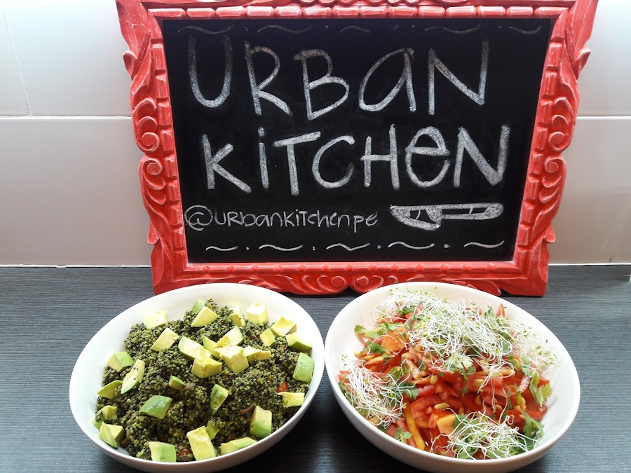 7. Cuando la ensalada esté ya mezclada, agregar el pesto y darle una última mezclada, haciendo que se integre con la ensalada.