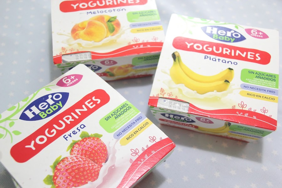 Yo suelo complementar esta comida con un YOGUR especial para bebés. Estos son los YOGURINES de HERO BABY y están muy bien, porque son a partir de los 6 meses, aportan el calcio necesario para el correcto desarrollo de sus huesos, además no tiene azúcares añadido y así me quedo tranquila. Porque Santiago se deja los biberones por la mitad y el yogur se lo toma enterito.