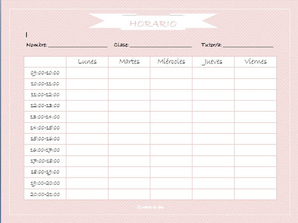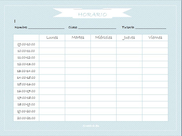 Así que si no tienes hijos en edad escolar, pero quieres tener un horario para organizar tus tareas diarias, no te cortes, imprime el que más te guste y a rellenarlo.