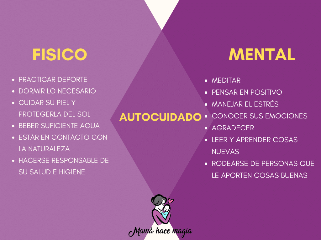 El autocuidado es sumamente amplio e incluye el plano tanto físico como mental. De modo que existen infinidad de maneras de autocuidarse como, por ejemplo, las que te expongo en esta tabla: