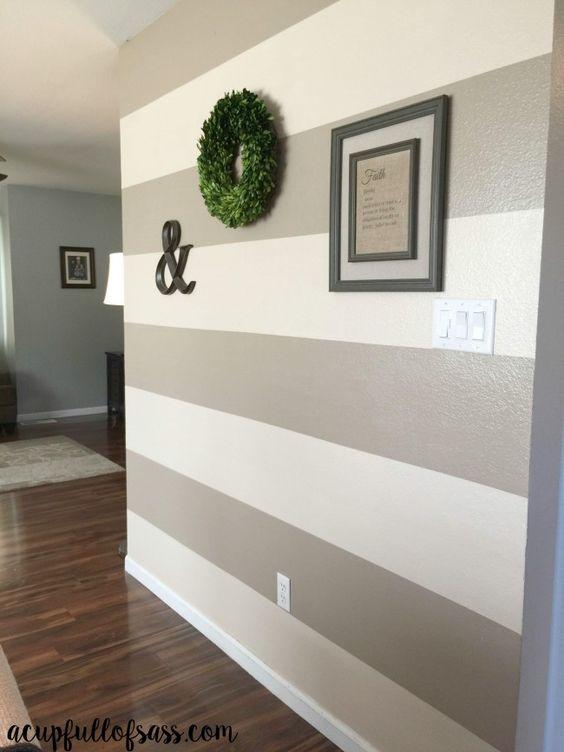 Solo necesitas crear líneas rectas sobre la pared con cinta de carrocero. Pinta las franjas alternativas del color seleccionado. Antes de que la pintura esté seca por completo, retira la cinta.