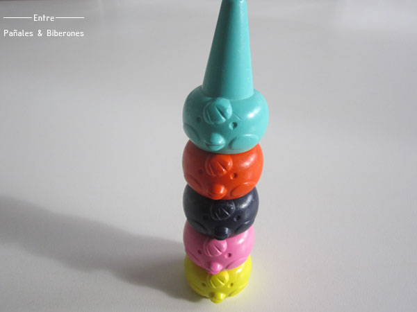 Nuestra nena pinta con ellas ( lo que menos ), los coloca y rota entre sus dedos, apila los pollitos unos sobre otros y sobre todo los tiene como amiguitos (les da de comer, los tira por el tobogán, ... ) Un sinfín de posibilidades que hacen que nuestra nena nunca se canse de ellos, por eso, siempre los llevo en el bolso, me ocupan poco y me encanta ver su carita de sorpresa cada vez que los saco !