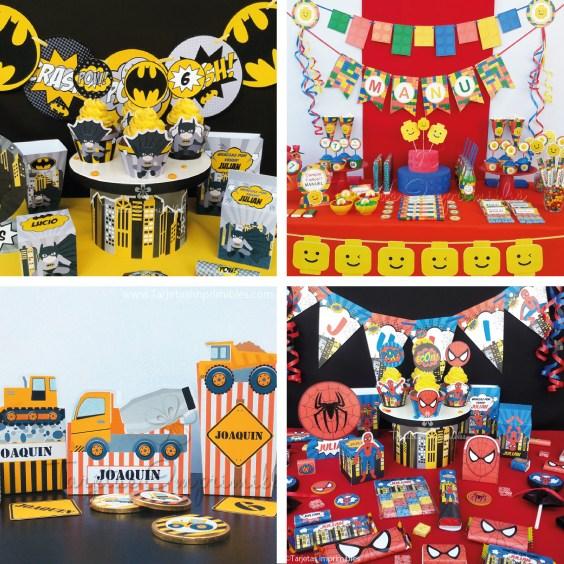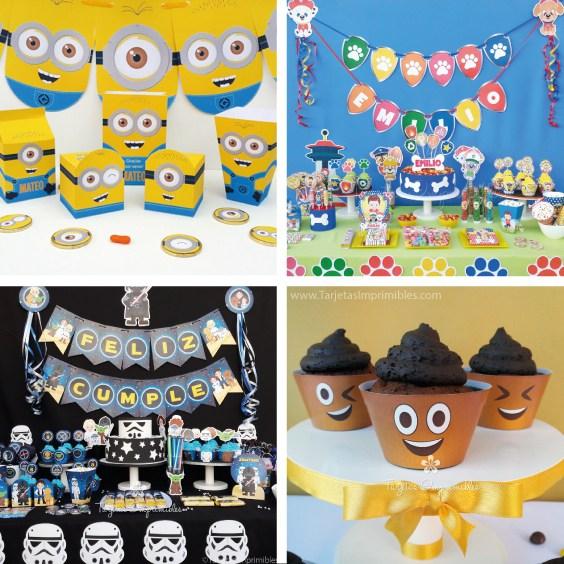 Imagen: www.tarjetasimprimibles.com Lo niños elijen Superhéroes, Batman y el Hombre Araña son los preferidos. La Patrulla canina, Star Wars, Emoticones, máquinas de construcción, Fútbol, Autos de carreras, Legos, Minions entre otros.