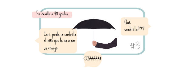 Pequeños detalles que se le olvidan a una. El coche hasta la bandera de bolsas, pero a la menda se le olvidó meter la sombrilla de la silla del niño. Al fin y al cabo, solo íbamos a andar por Andalucía durante tres semanas, con ola de calor incluida...