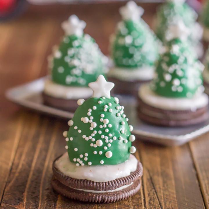 Otro de galletas oreo pero esta vez con un árbol navideño hecho con fresas bañadas en caramelo verde derretido. Aunque se nos ocurre bañarlo en chocolate blanco derretido pintado de verde. ¡Delicioso!