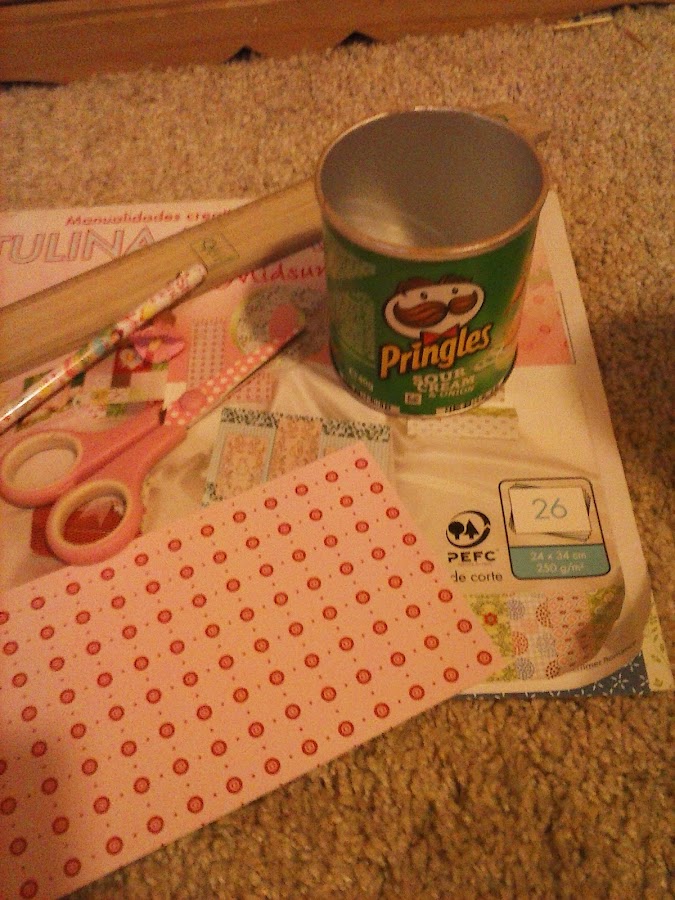 Empecé por los recipientes donde colocar las pajitas y los cubiertos. Para ello utilicé las latas pequeñas vacías de Pringles, muy ricas por cierto.