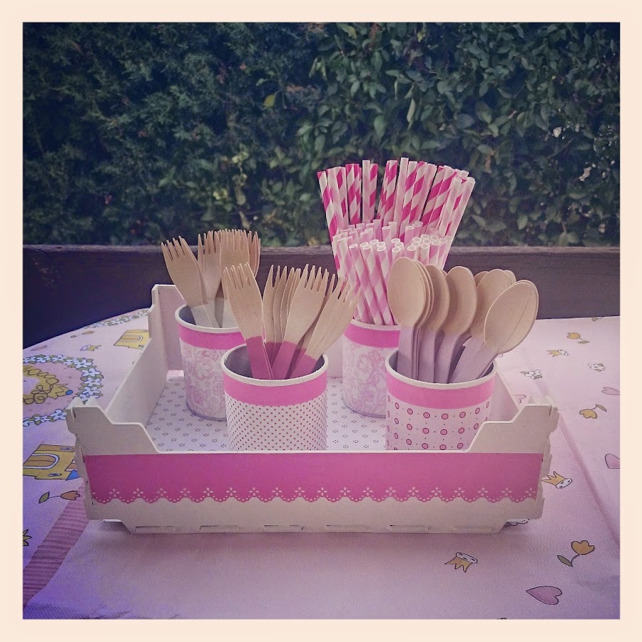 En este post os enseño cómo hice una BANDEJA PARA COLOCAR LOS CUBIERTOS Y LAS PAJITAS para que los invitados cogieran de la mesa donde puse platos, vasos, servilletas... Éste DIY lo hice casi sola, me ayudó mi nena comiendo las patatas.