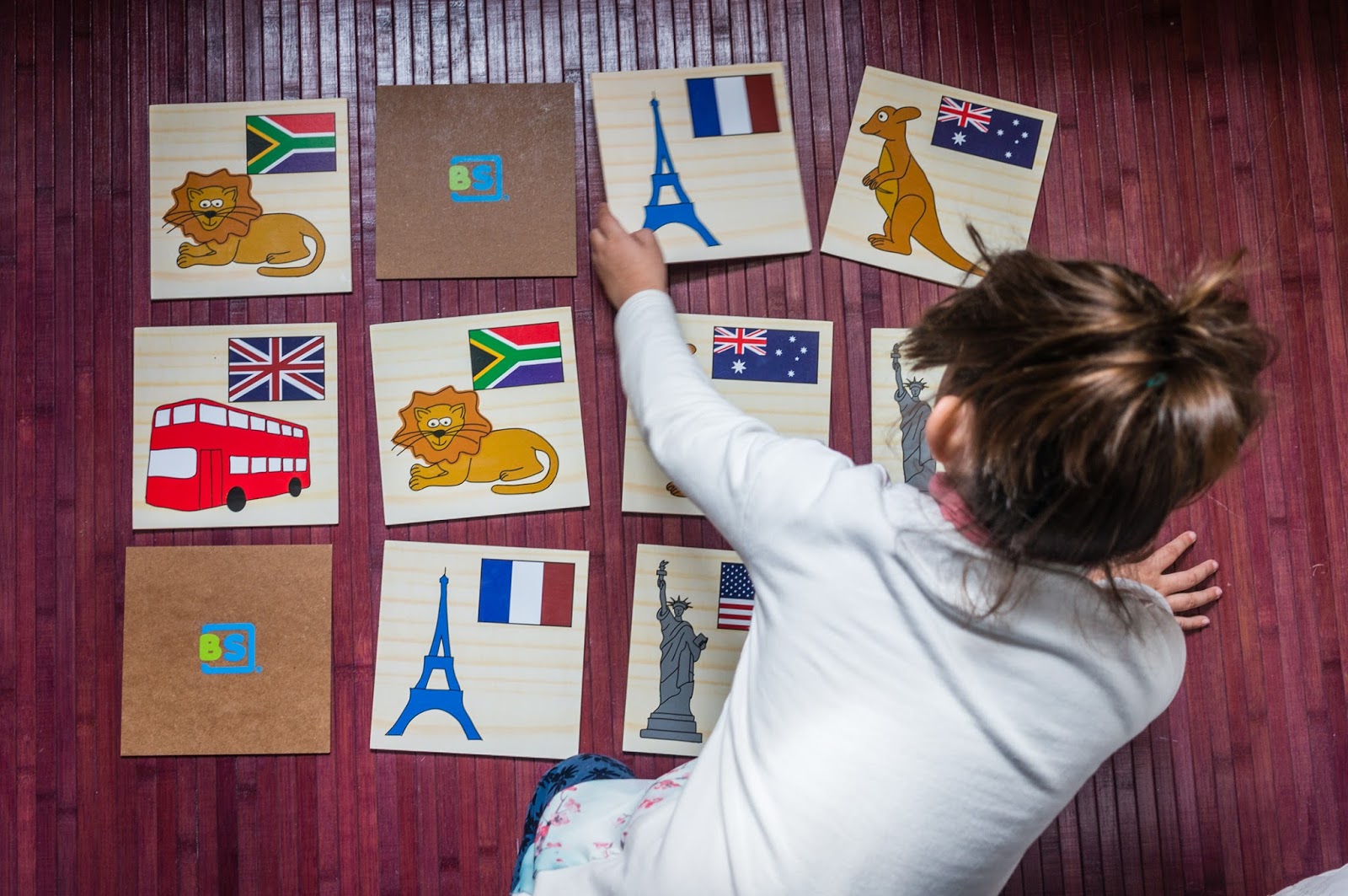 Los amigos de BabyCaprichos (te hablé de esta familia mallorquina emprendedora aquí) nos regalan uno memo gigante de madera con 15 parejas de países y monumentos representativos. Al ser grande y manejable puede parecer ideal para niños, pero lo cierto es que lo recomendaría para cualquier edad.
