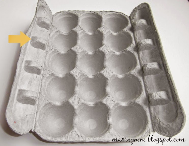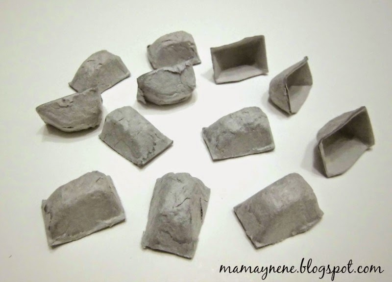 A la caja de huevos le podemos sacar el máximo provecho, así que la parte principal (donde van los huevos) la podemos reservar y utilizar para otra manualidad como el lindo Cuadro Bouquet que hicimos hace unos días, pues ahora solo utilizaremos unas pequeñísimas secciones de la caja. Para este juguete casero utilicé doce de estos pedacitos.