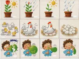 Se trata de fichas con unos dibujos que ordenados nos cuentan una historia de principio a fin.