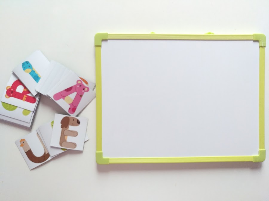 Nosotros tenemos una mini pizarra magnética que utilizamos como base para colocar las letras, ordenarlas, crear palabras, etc. , pero también nos lo pasamos genial jugando con el abecedario en la nevera de casa.