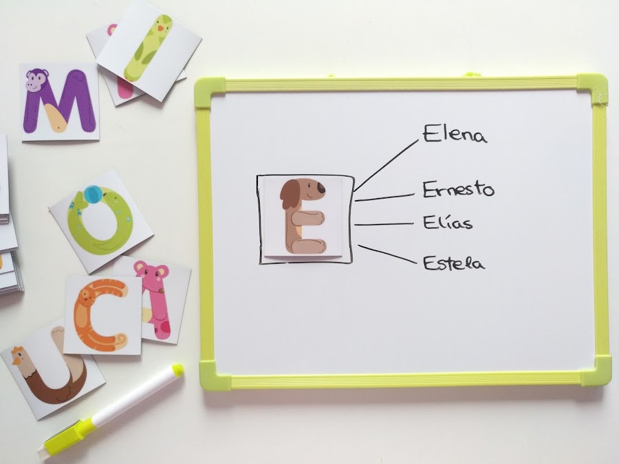 - Escribir varias palabras y dejar un hueco donde los peques deben colocar la letra por la que empiezan todas las palabras. O viceversa, poner una letra y que escriban palabras que empiecen por la misma.