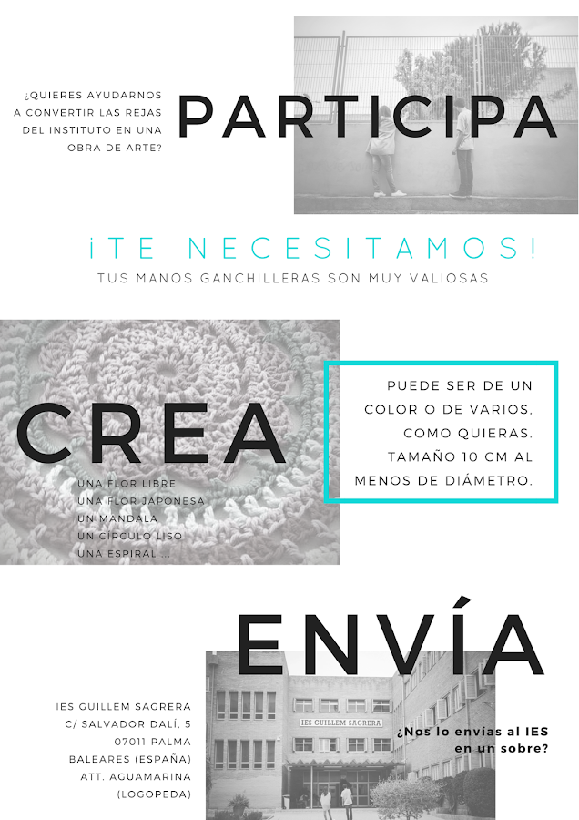 Y por eso precisamente, en el marco del año dedicado al arquitecto y escultor mallorquín Guillem Sagrera, que da nombre al Instituto de Educación Secundaria donde trabajo, propuse hacer una acción yarn bombing para cubrir las verjas que rodean el centro, pues además de ser realmente antiestéticas, hacen que el instituto parezca un correccional o un centro penitenciario.