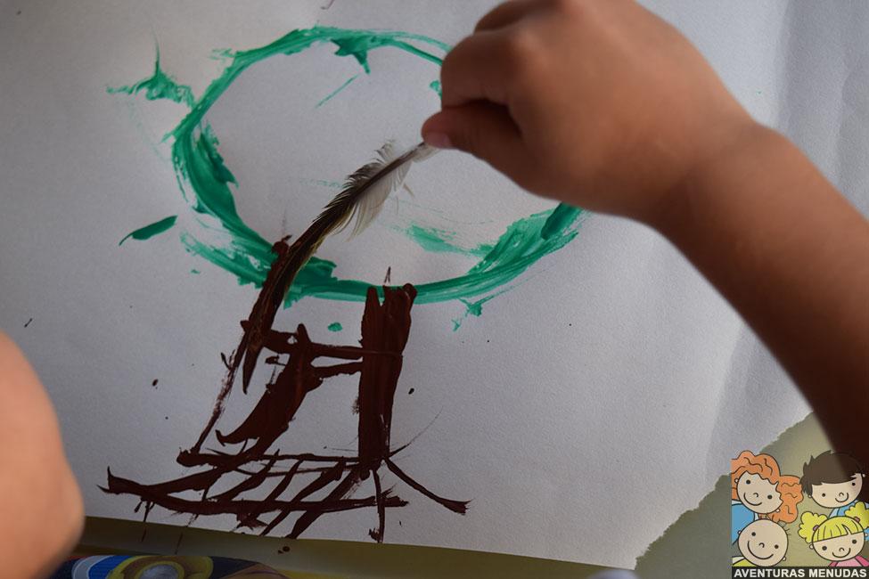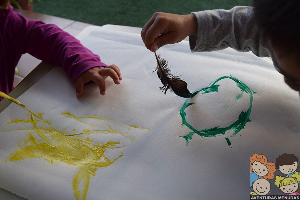 Recoger y pintar con plumas de pájaro