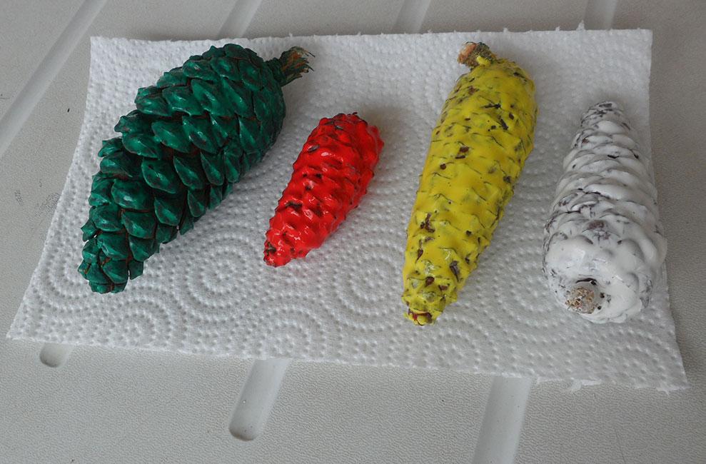 Esta actividad ya os la contamos hace tiempo en este blog. Es sencilla y muy divertida, porque además las piñas resultan muy originales de pintar. Podéis ver el post aquí: Pintar piñas de colores.