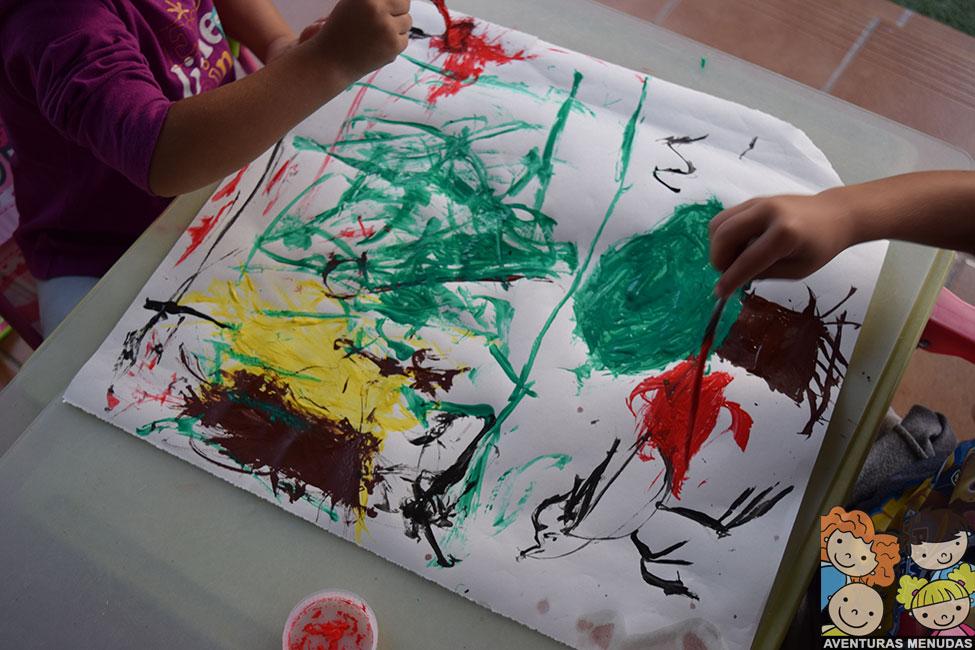 Bueno, peques y no tan peques, porque hasta yo misma me puse a pintar ese día con ellos. Pero es que no paré hasta que no pinté la hoja completa como me había imaginado!!!