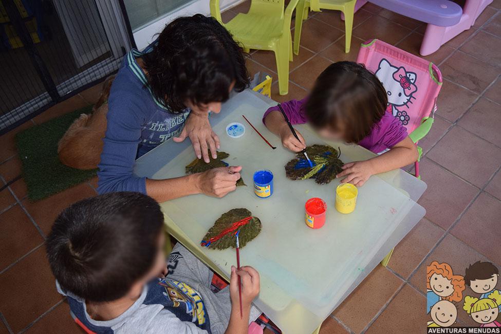 Un pincel (o incluso las plumas de antes), temperas de colores y las hojas secas y prensadas son geniales para que los peques dejen libre su imaginación y pinten a gusto.