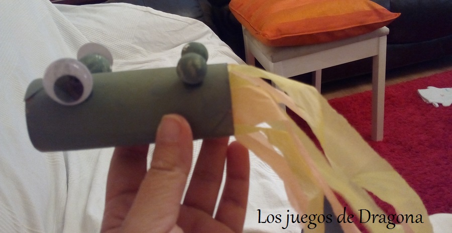 - Manualidades: Un dragón con rollos de papel higiénico.