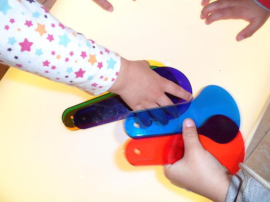 Superponer las paletas de dos en dos o más para ver el color que se obtiene. Podéis incluso jugar a las adivinanzas para ver si adivinan qué color saldrá.