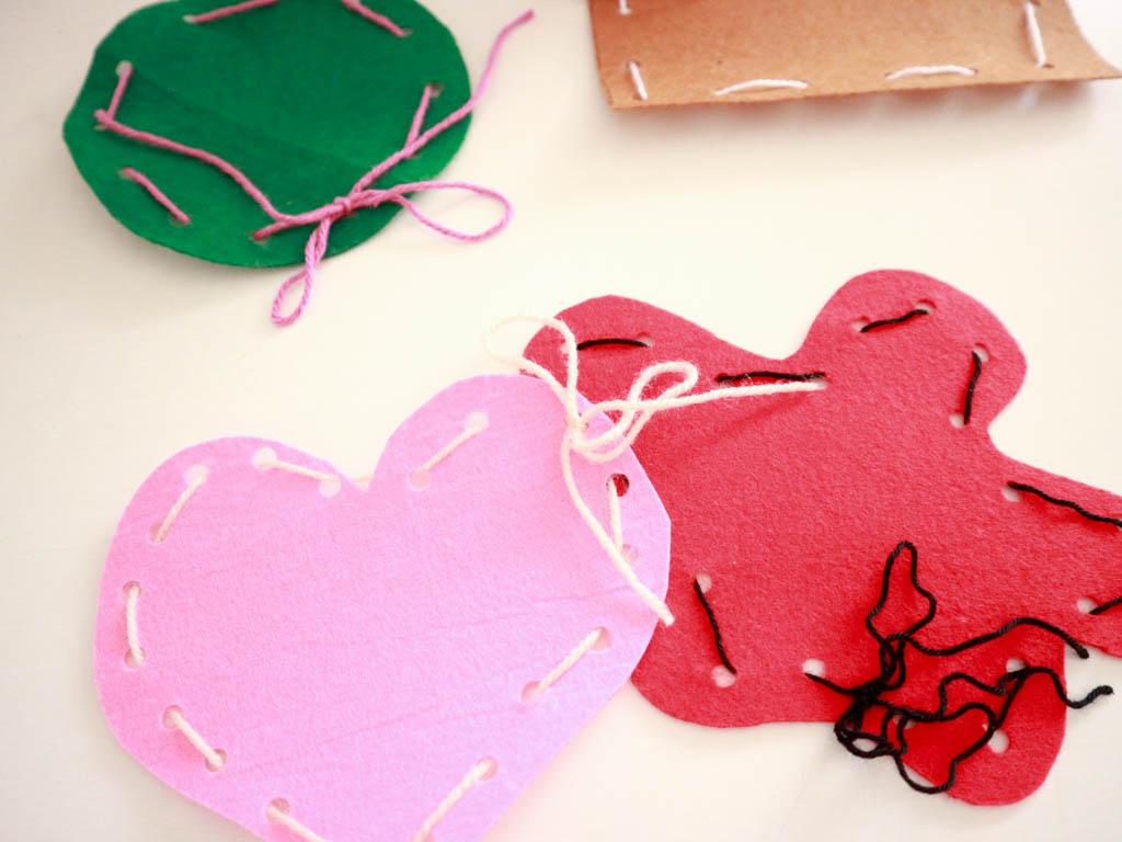 Con un poco de fieltro, he preparado unas formas sencillas y divertidas con las que trabajar la motricidad fina. Coser, a demás de proporcionarles un buen recurso para su futuro, les enseña la paciencia y a mantener la concentración.