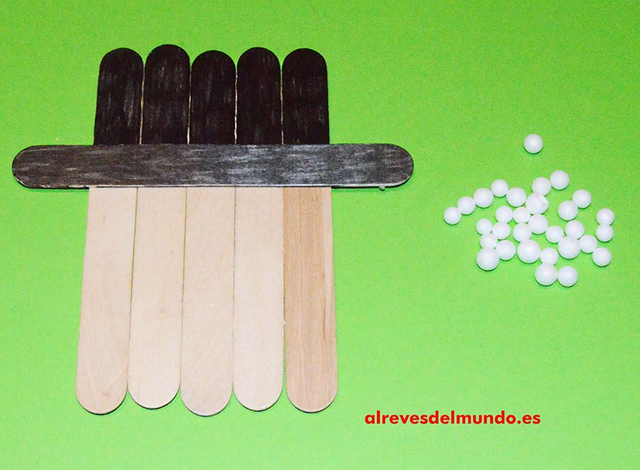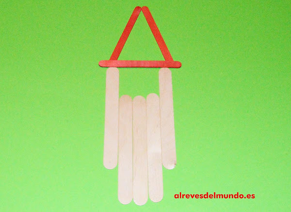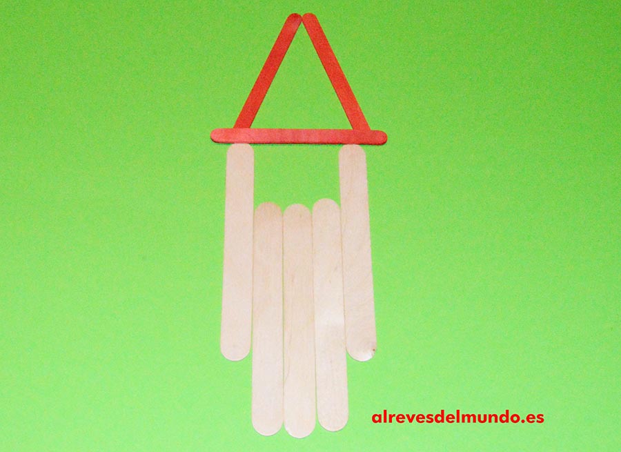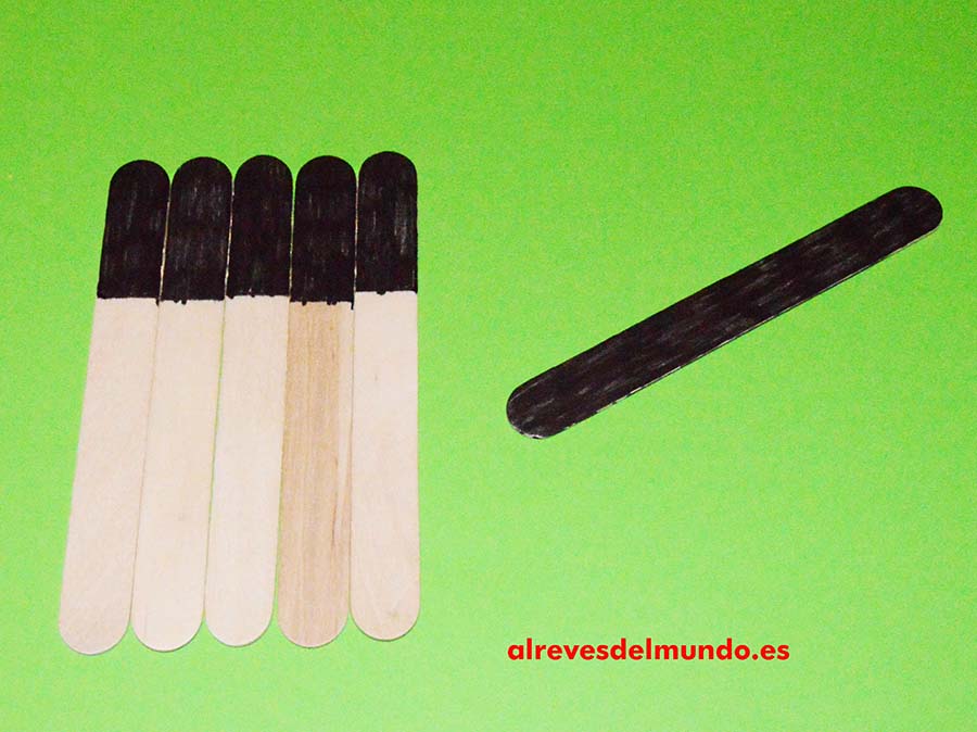 - Pegamos 5 palos de polo entre si y pintamos la parte de arriba (sera la chistera).