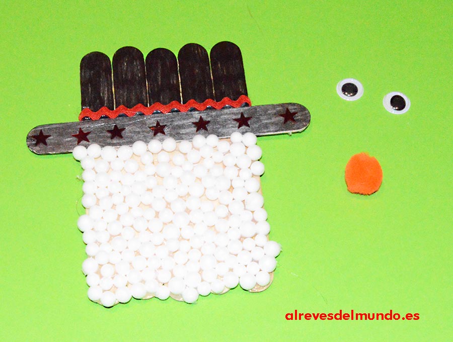 - Pegamos los ojos y la nariz y una cuerdita para colgarlo