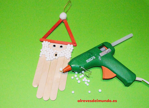 - Adorna el gorro y pegas un trozo de cuerda para colgar