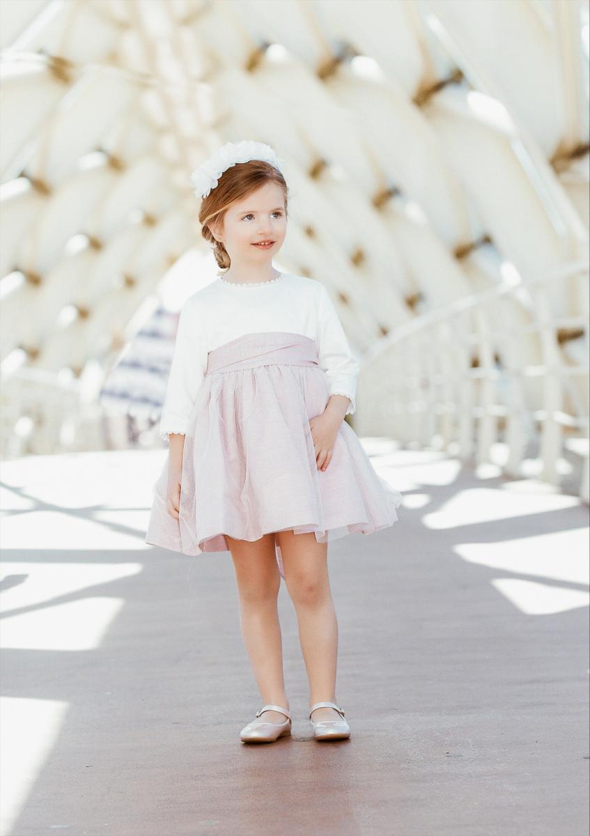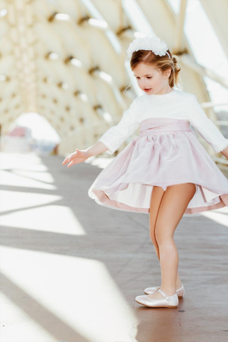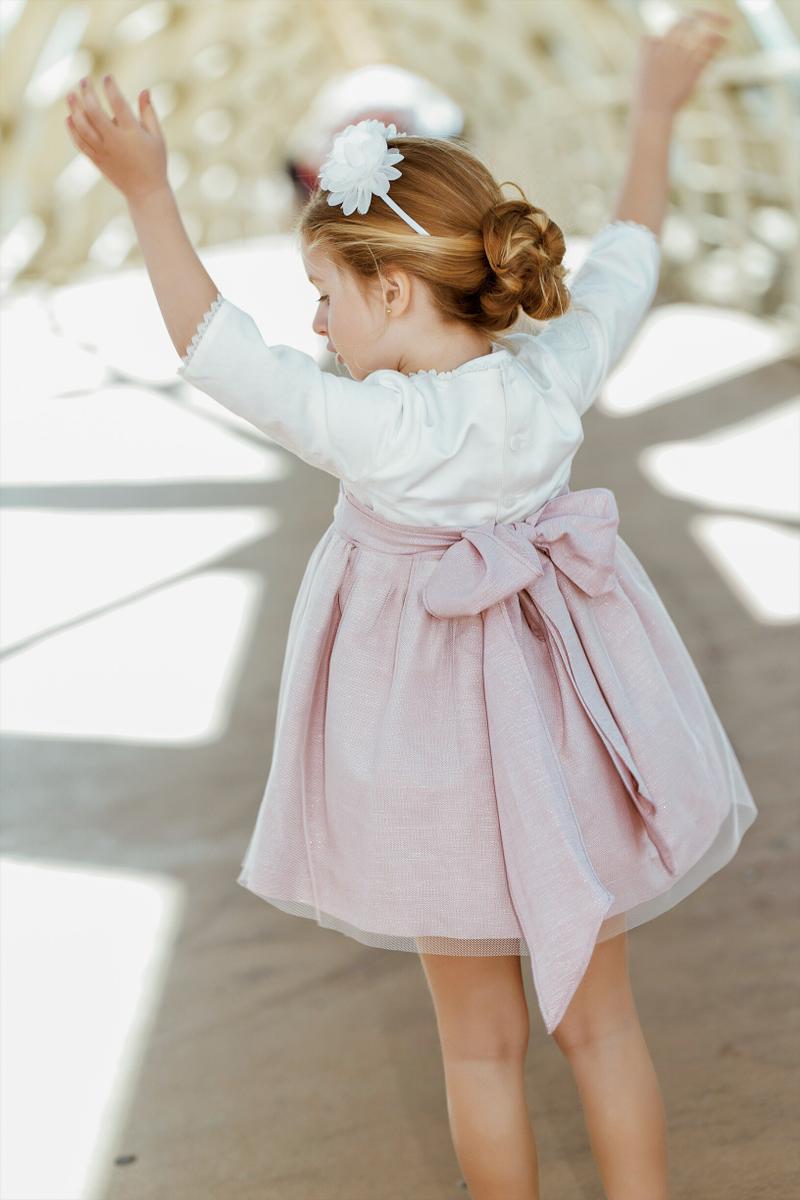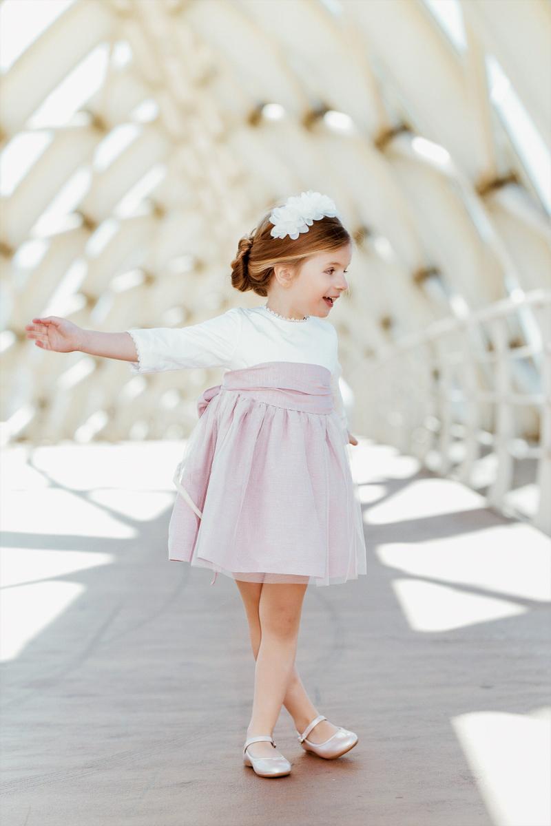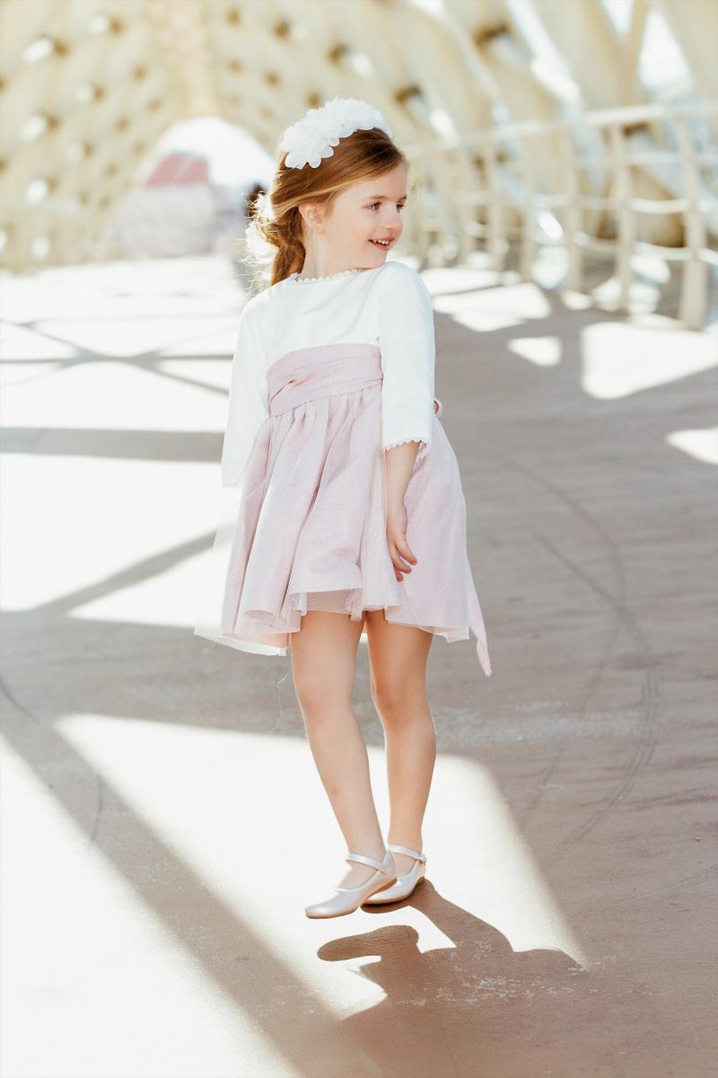 Ale va vestida con unos de los diseños que lleva su firma, no puede ser mas especial, tienen también la versión sin mangas, pero es para el bautizo de Manuel y aquí en Abril aun hacer fresquito. El fajín es ideal y la falda me encanta con el toque que le da el tul sobrepuesto.