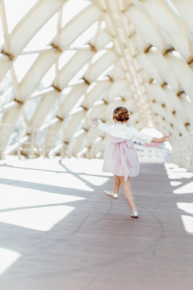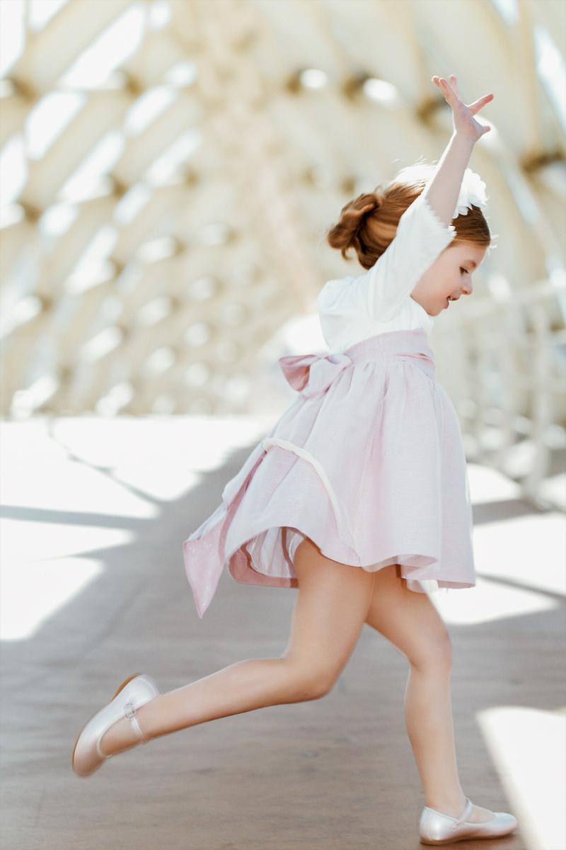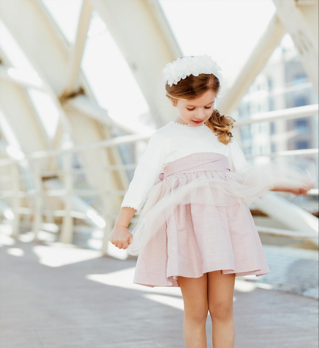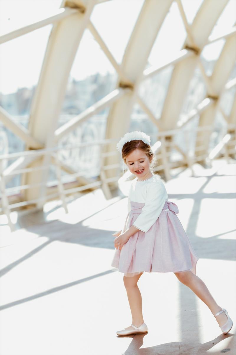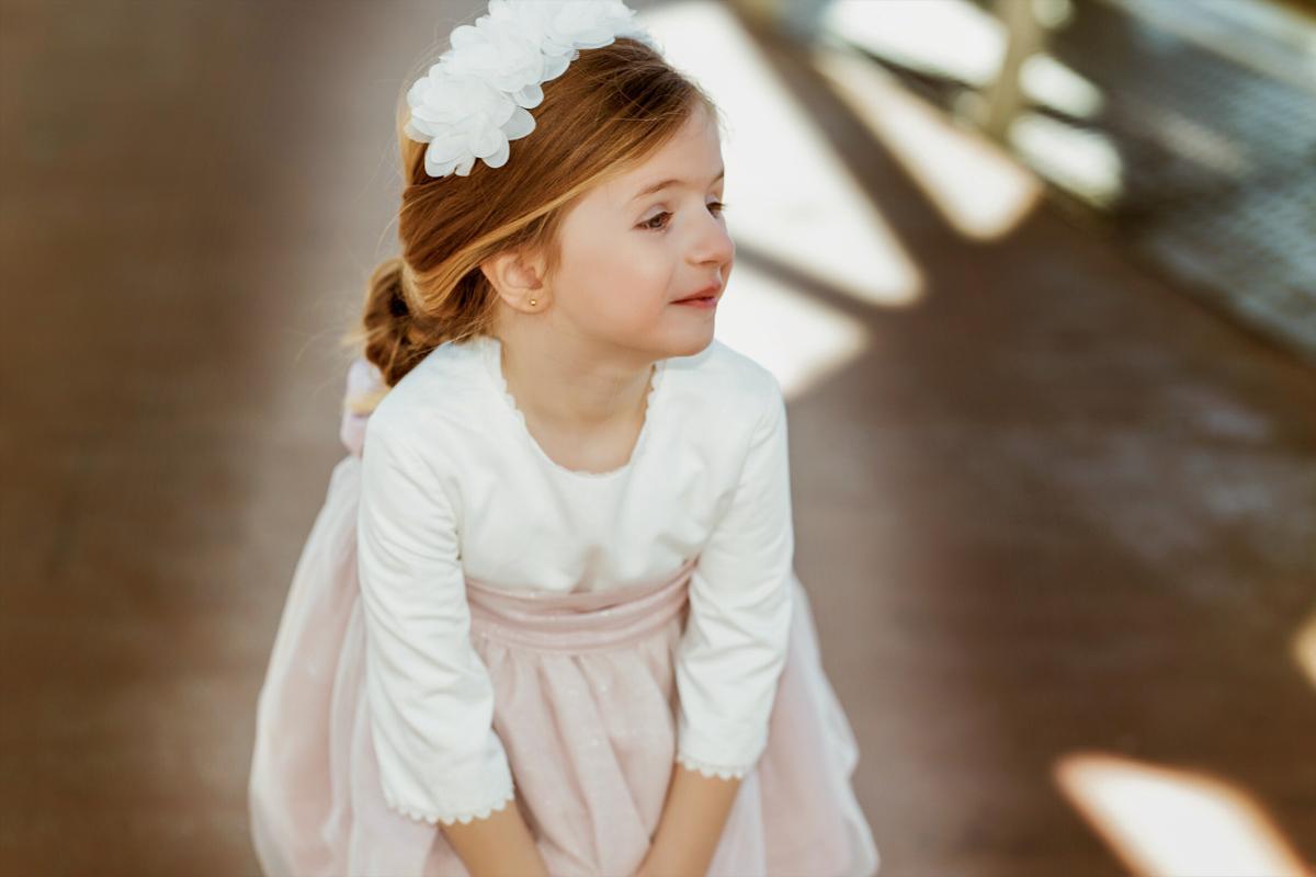 Ale va vestida con unos de los diseños que lleva su firma, no puede ser mas especial, tienen también la versión sin mangas, pero es para el bautizo de Manuel y aquí en Abril aun hacer fresquito. El fajín es ideal y la falda me encanta con el toque que le da el tul sobrepuesto.