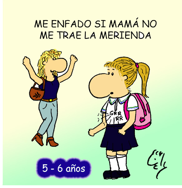 5 - 6 años: Ya no se asustan si no estas justo en el momento de la salida. Es más, empiezan a aprovechar esos pequeños ratos para jugar y hablar con otros niños que están en su misma situación. Y cuando llega mamá...¡alegría! (hasta te dan un beso y todo). Pero si no les llevas la merienda....protestas, pucheros, morritos y algún que otro ¡"Jo-ooo"!.