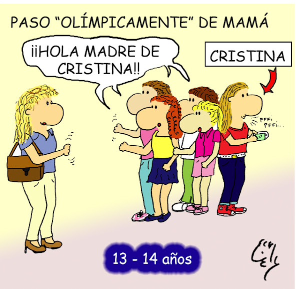 13 - 14 años: Directamente pasan de ti. Tienes que perseguirlos gesticulando mucho y enfadándote con ellos. Puede suceder incluso que veas pasar un grupito de chicas, entre las cuales se encuentra tu hija, y que todas te saluden excepto ella.