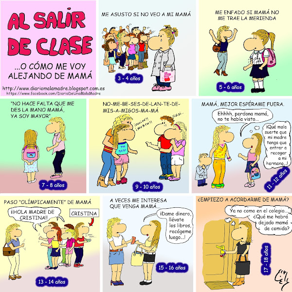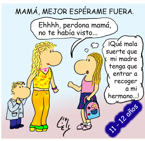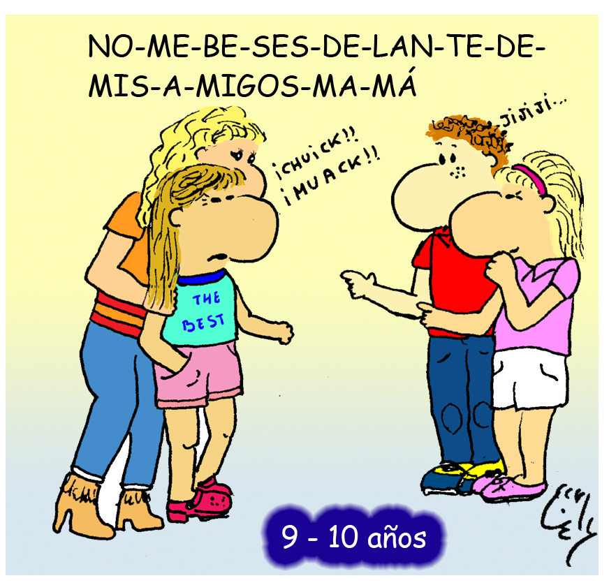 9 - 10 años: En estas edades, no es que eviten el contacto físico con la madre delante de sus amigos...¡es que está TOTALMENTE PROHIBIDO!.