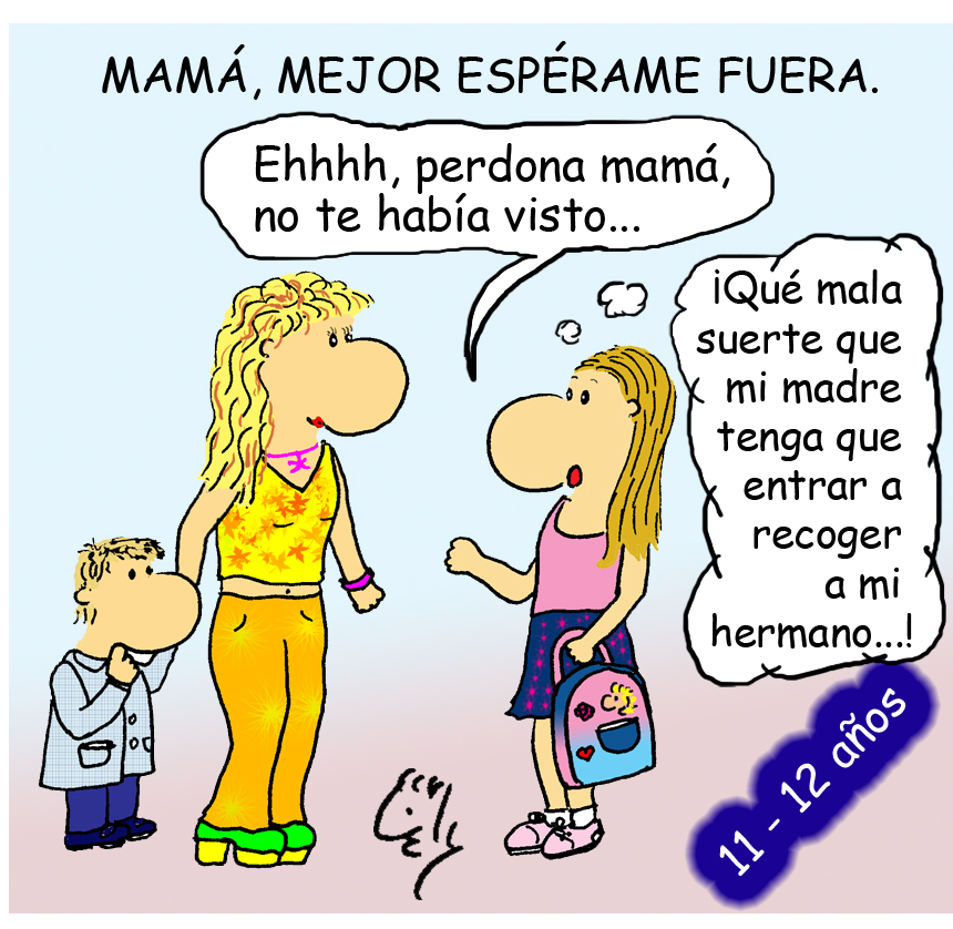 Si alguno tuviera que entrar a recoger a un hijo más pequeño a la salida, empezará a notar que el hijo mayor se empieza a hacer el despistado. Como que no te ha visto. Es normal. Yo creo que se da más en chicas que en chicos.