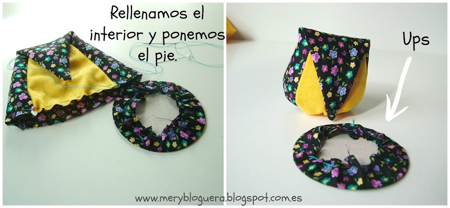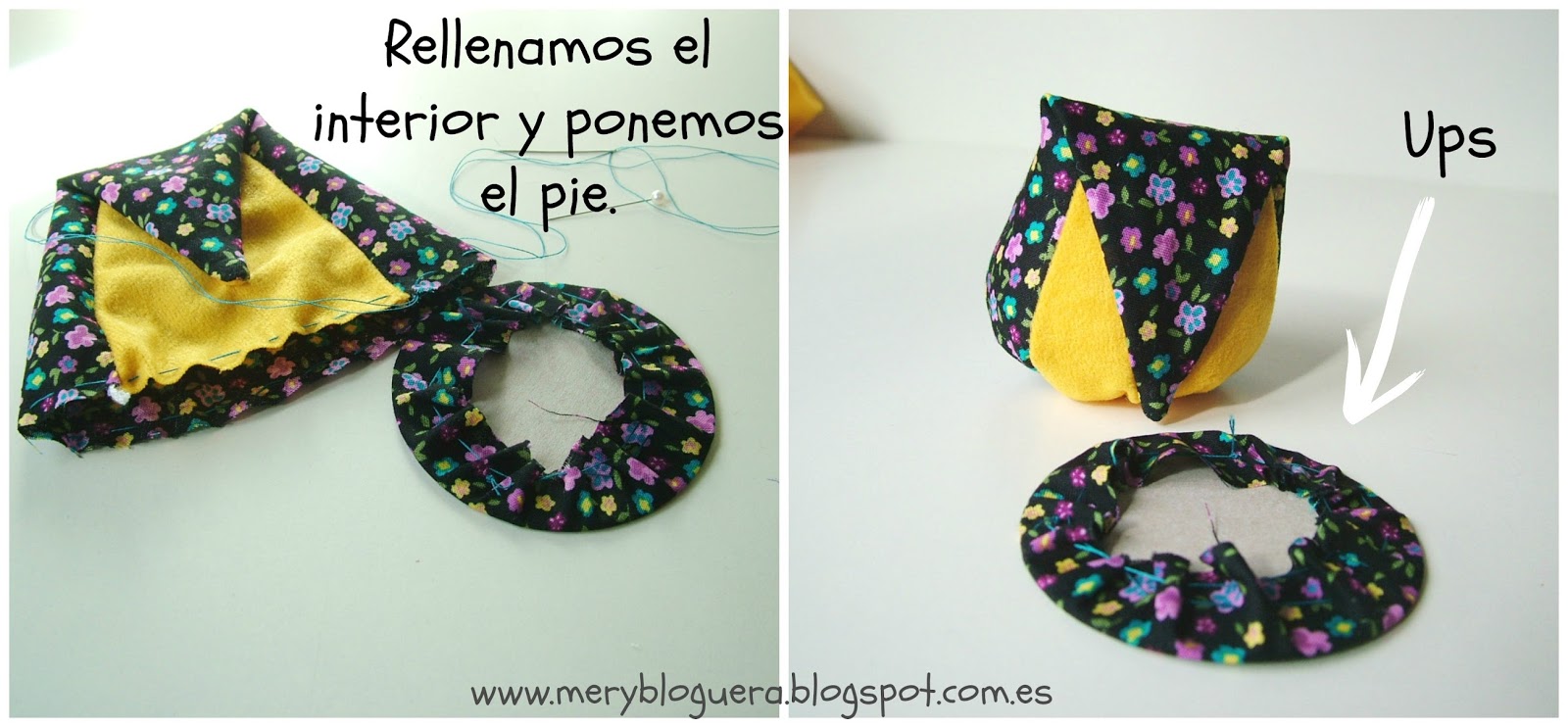 - Damos la vuelta a la tela y cosemos la puntita en el medio aproximadamente.