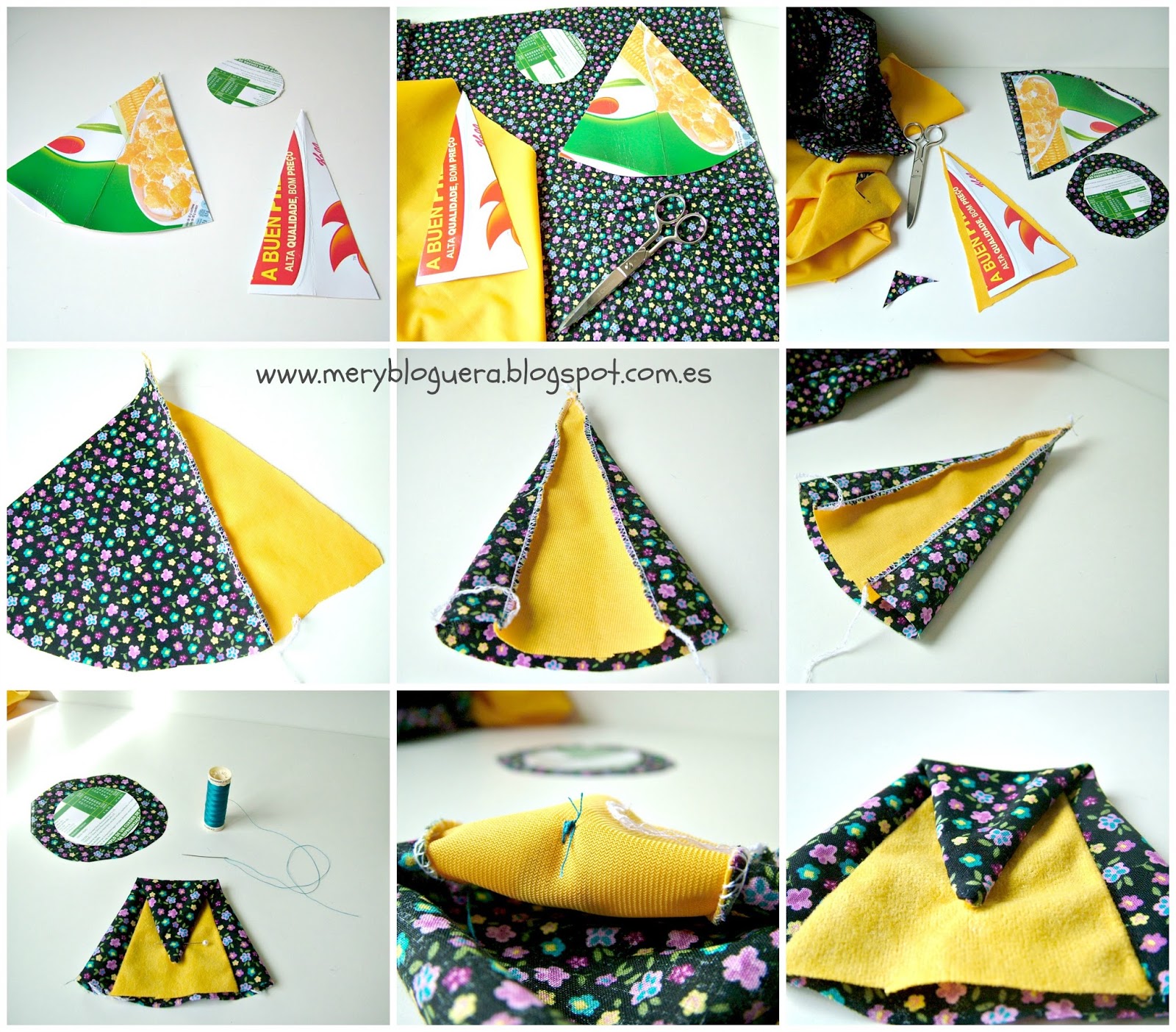 - Cortamos la tela, cada triángulo con una tela. el círculo lo cortamos con un dedo aproximadamente de holgura.