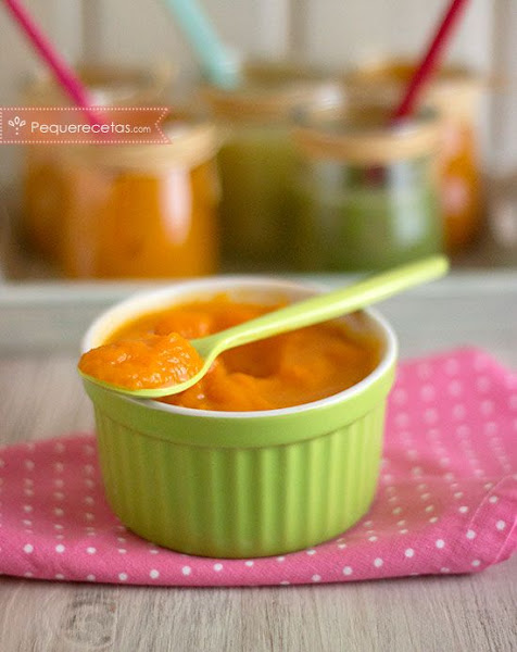 A los 2 o 3 días le hice un puré de patata y zanahoria, muy cocido y muy fino. Al principio ponía caras y saboreaba, es algo nuevo pero no le disgustaba. No se enfadaba porque sabía que su bibe estaba ahí.