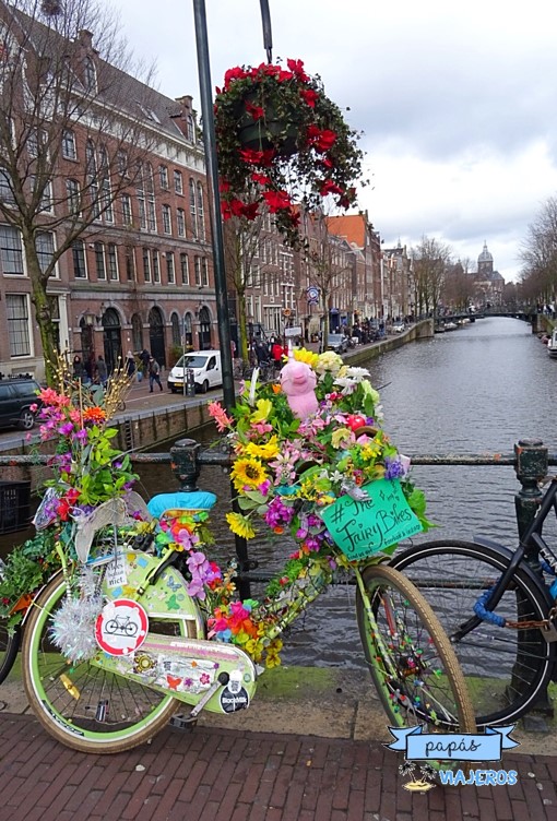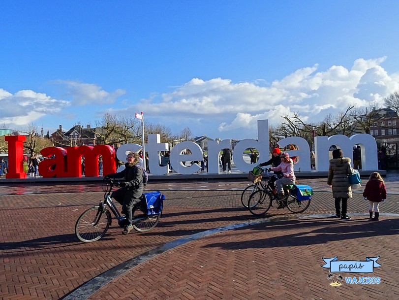 Amsterdam es una ciudad que nos ha encantado. Totalmente recomendable con niños, aunque si que es verdad que al principio cuesta adaptarse a que las bicis tienen prioridad absoluta y van un poco locas, más de una vez tuve que coger a la niña viajera para que no se chocara con alguna bici.