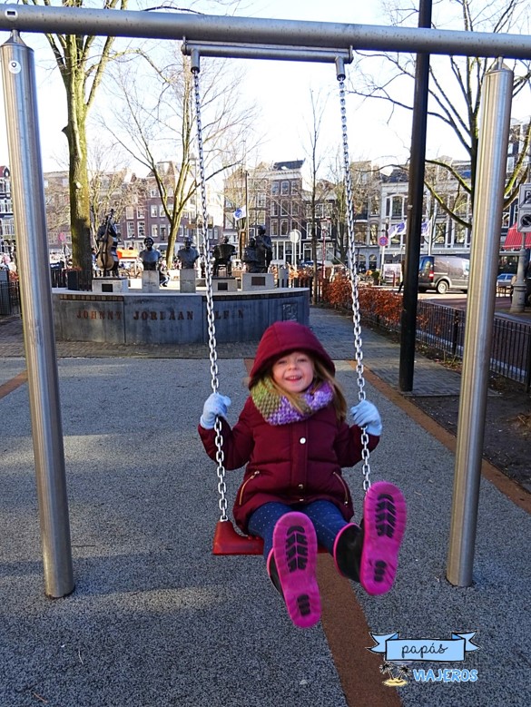 Y por fin encontramos un parque con columpios en Amsterdam, nos costó encontrarlo, eh? Allí mismo en Jordaan. La niña viajera se tiró corriendo a él! jejeje